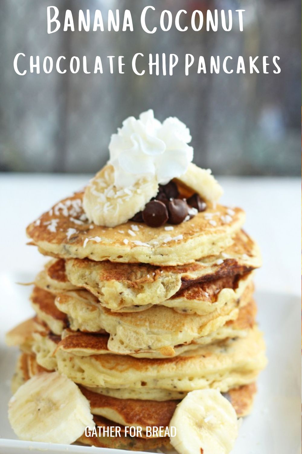Banana Coconut Chocolate Chip Pancakes – light and fluffy pancakes with fresh banana flavor and bursting with bites of coconut. A breakfast that gives a delicious start to the day.
