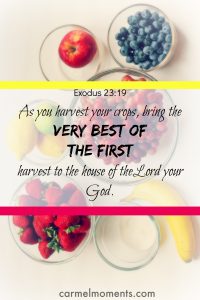 I was reading a devotion one evening at dinner with kids. This devotion struck a chord with me that evening. It spoke of our first fruits. It was titled “The First and the Best.” It was from this book here. It mentioned that usually there’s an order when we give things away like food, money or…